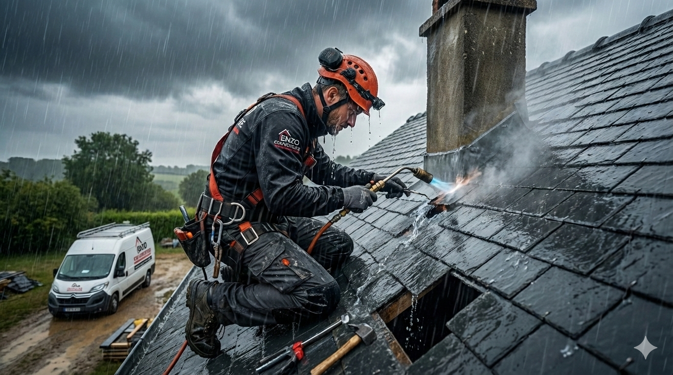 Une fuite ou un dommage sur votre toiture (tuiles déplacées, problème de zinguerie) nécessite une réponse immédiate. Face à l'urgence, ENZO COUVERTURE est votre partenaire de confiance pour le dépannage rapide dans le Loiret (45). Nous assurons un diagnostic précis pour identifier la source du problème, suivi d'une réparation durable. Nous agissons vite pour sécuriser votre habitation et prévenir toute infiltration majeure.